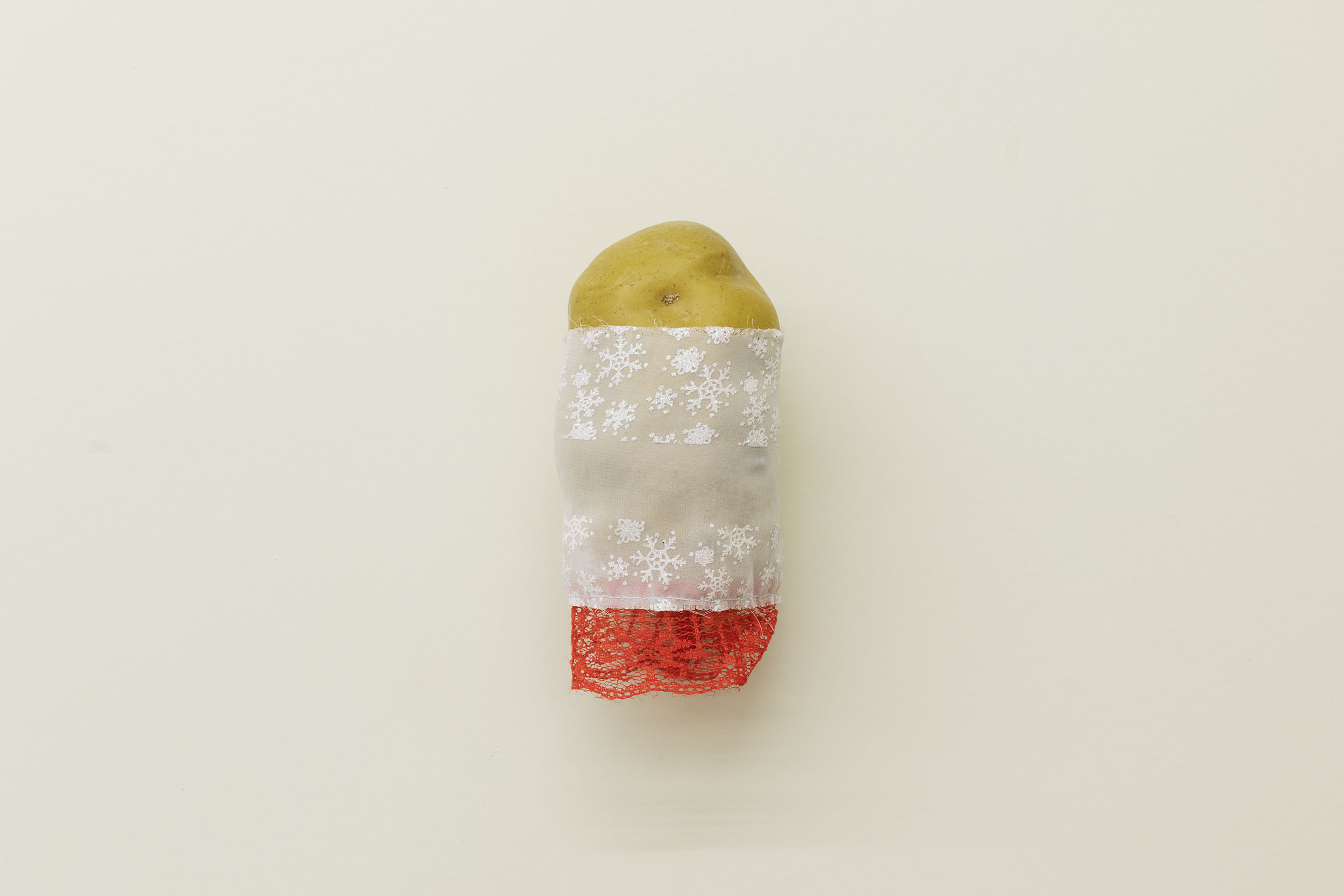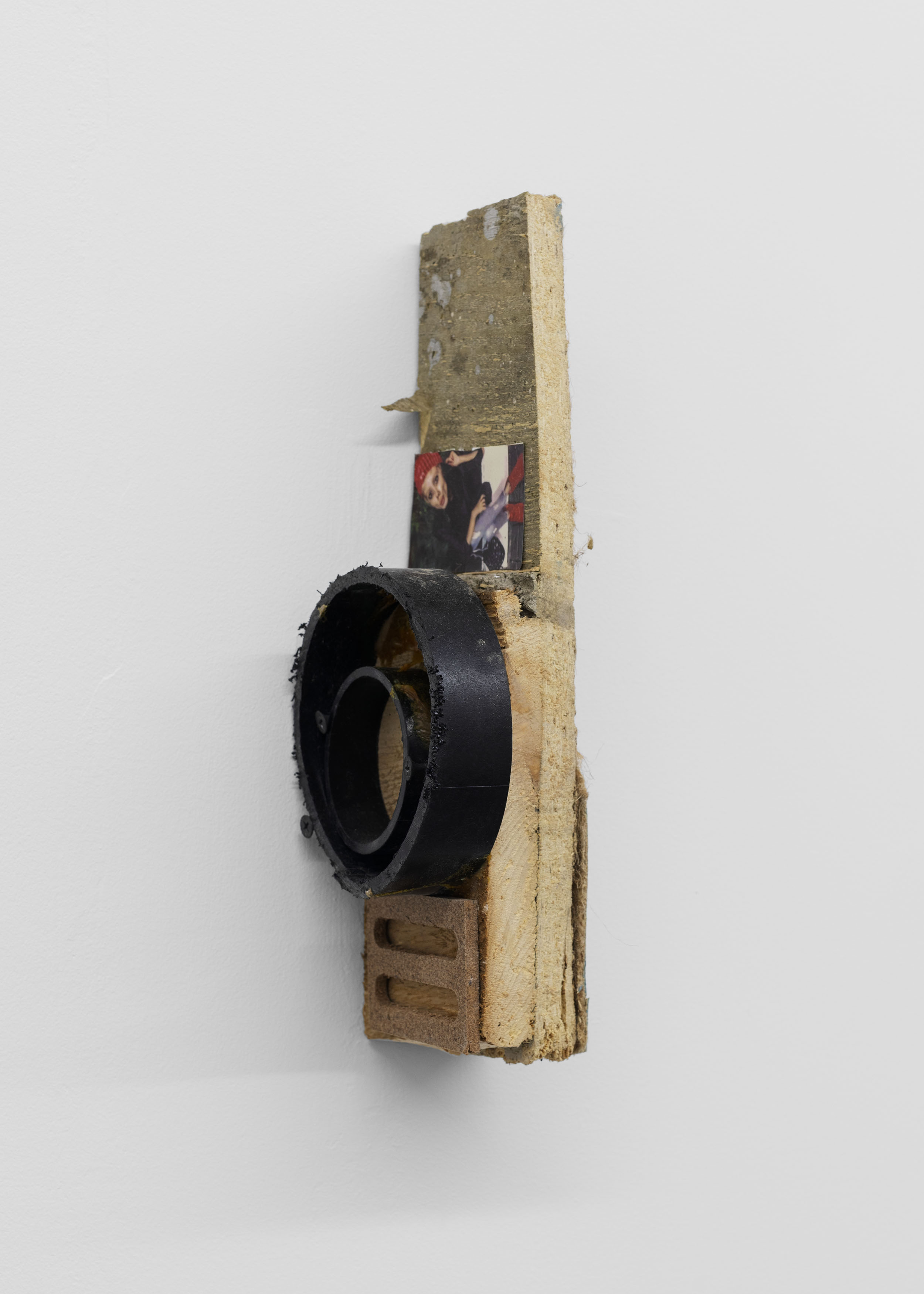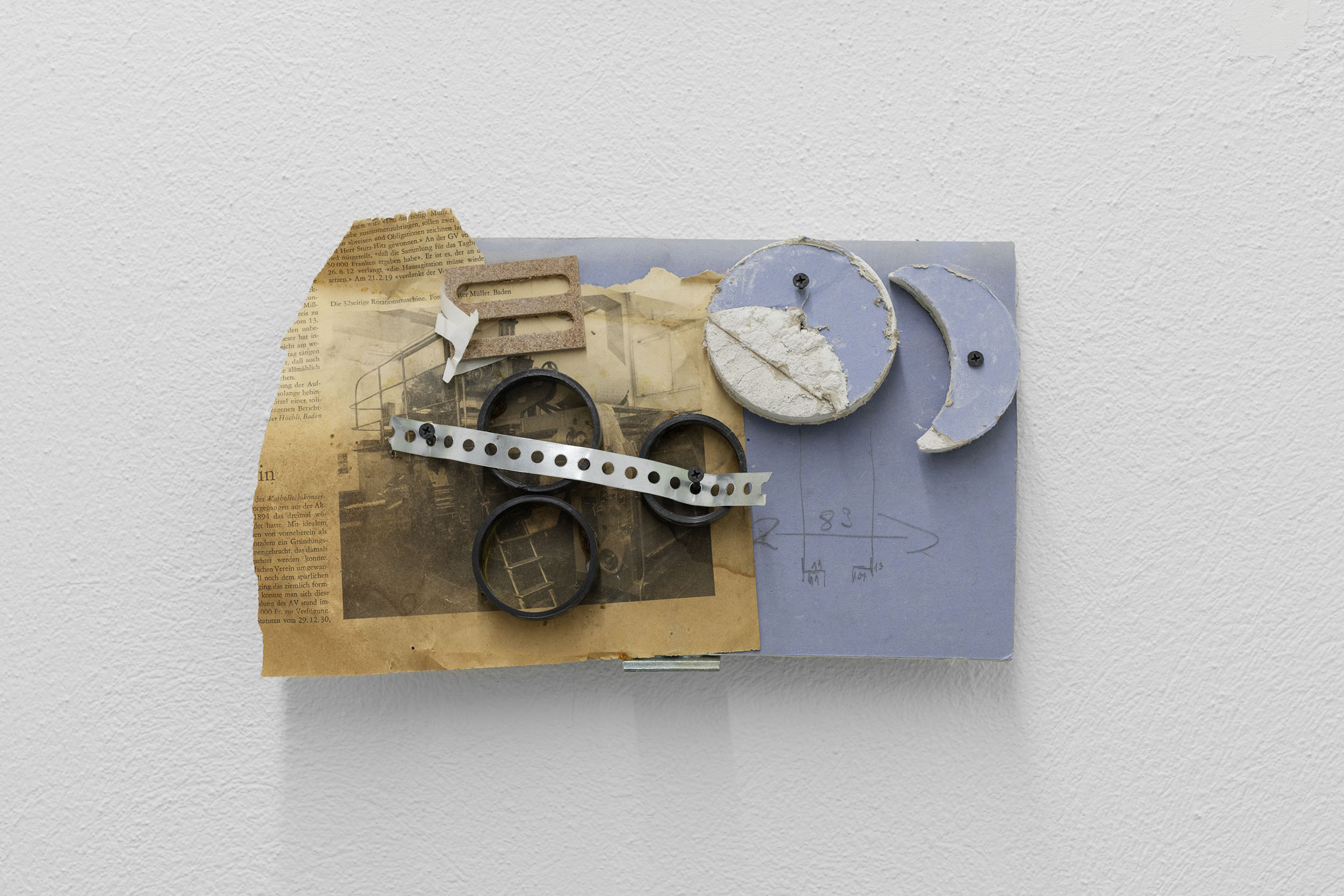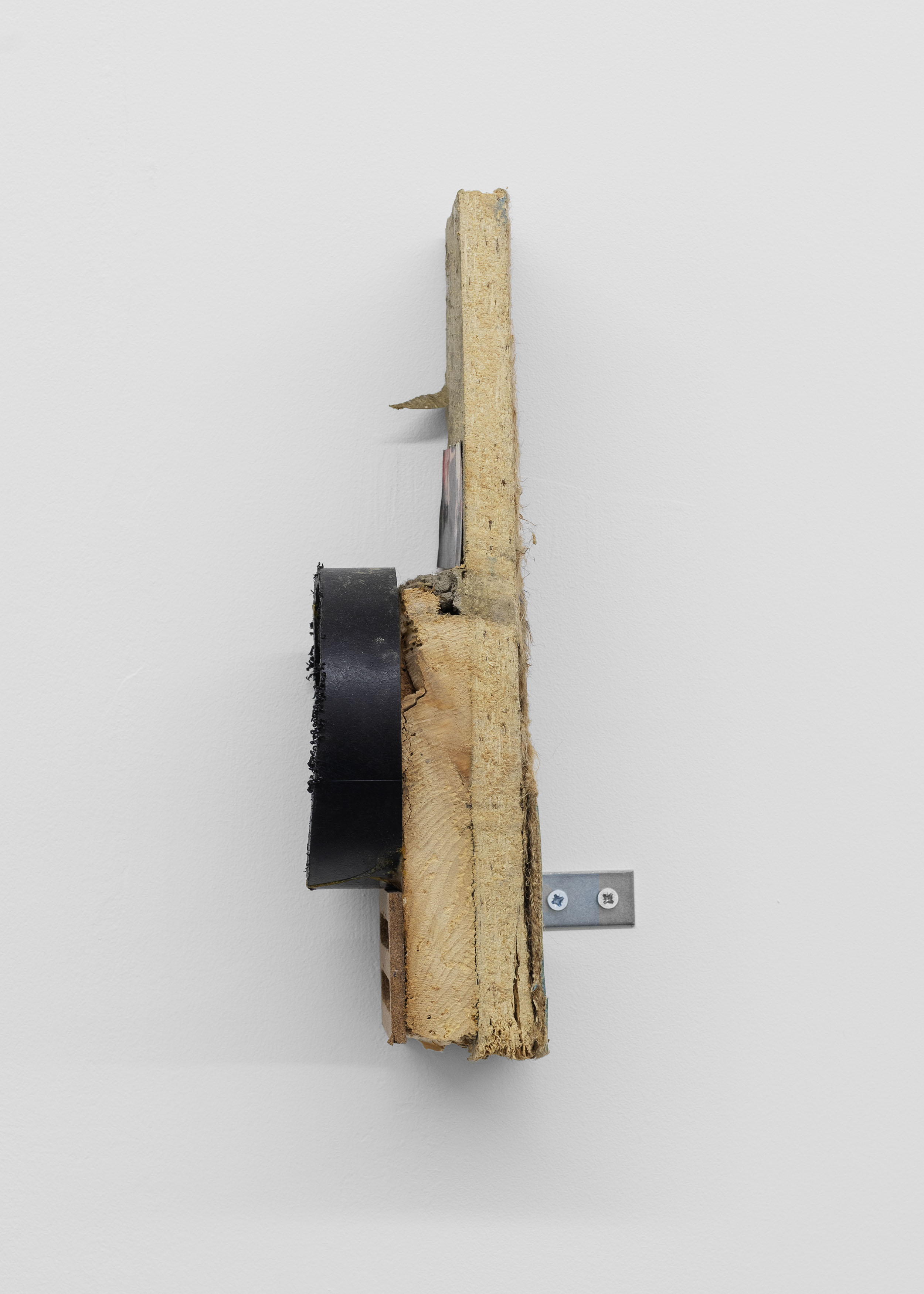 Medjid Sopi, On Site, 2026, gypsum plate, polyethylene, cork, newspaper, screws, glue, punched tape