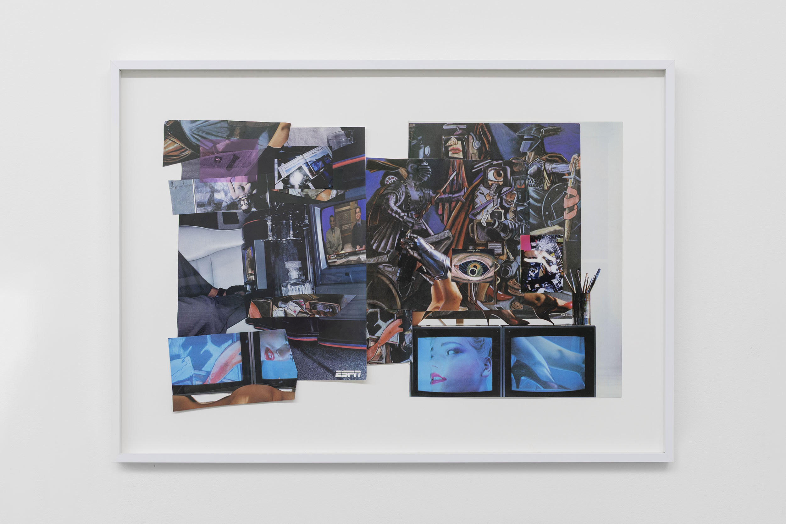 Virginia Ariu, Exceeder, 2025, newspaper crops, polaroids / framed