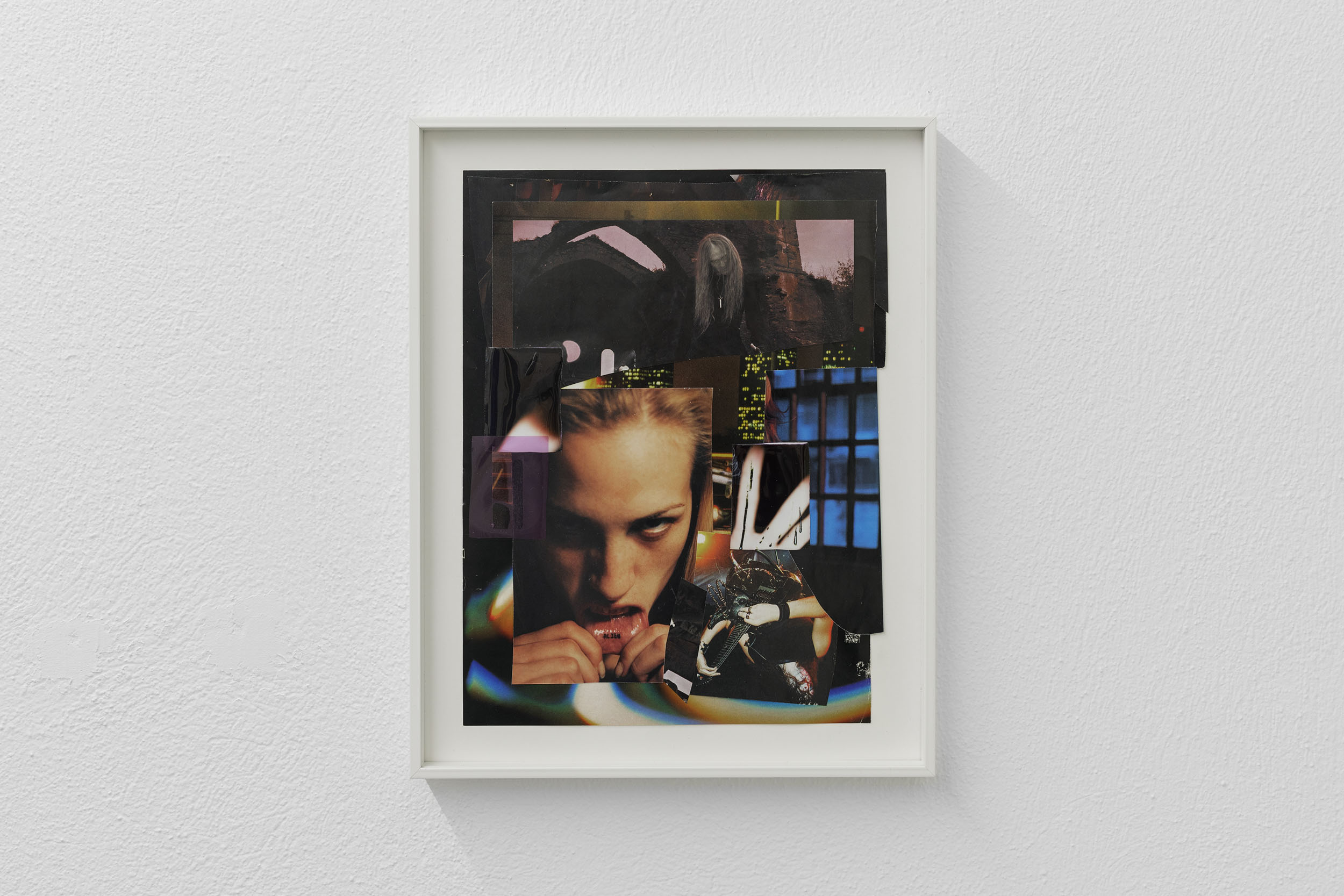 Virginia Ariu, Alien, 2025, newspaper crops, polaroids / framed